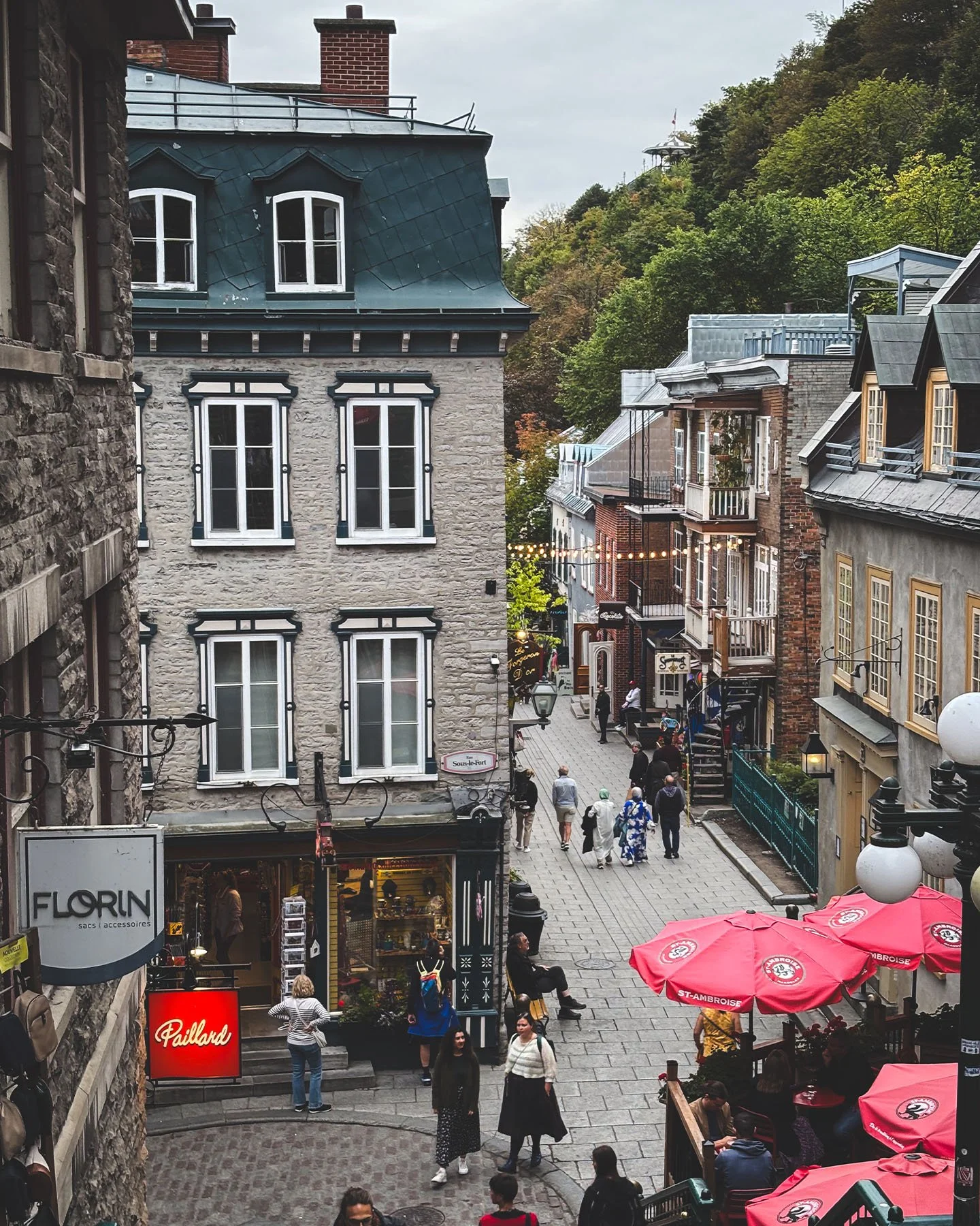 Seemed a bit on-the-nose for a Canada trip, but the main thing Juni wanted to do at Montmorency Falls was play with the maple leaves.